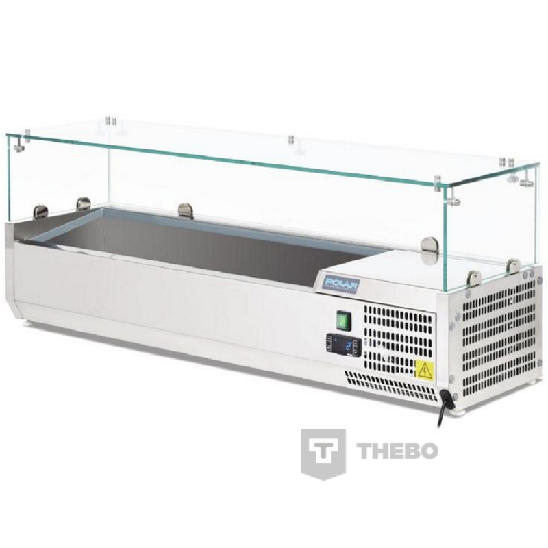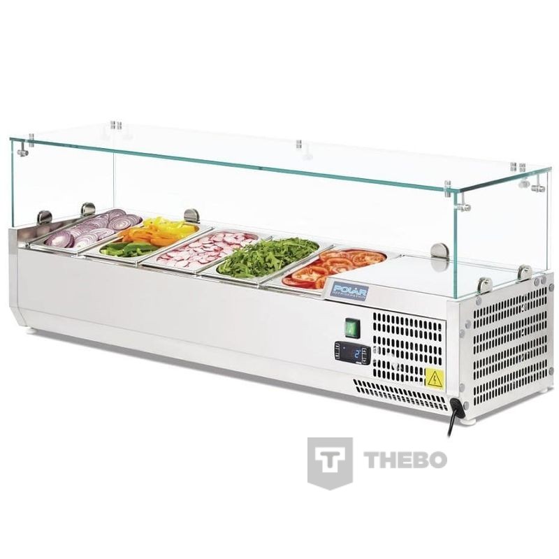 De Polar Opzetvitrine G608 is ideaal voor het gekoeld bewaren van ingrediënten voor in broodjeszaken, pizzeria’s etc. Met een digitaal display is de opzetvitrine gemakkelijk te bedienen. De G608 heeft een volledige roestvrij staal constructie met veiligheidsglas.