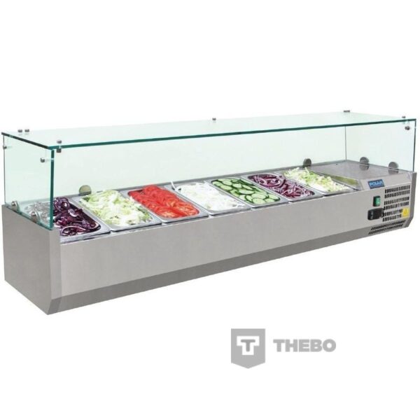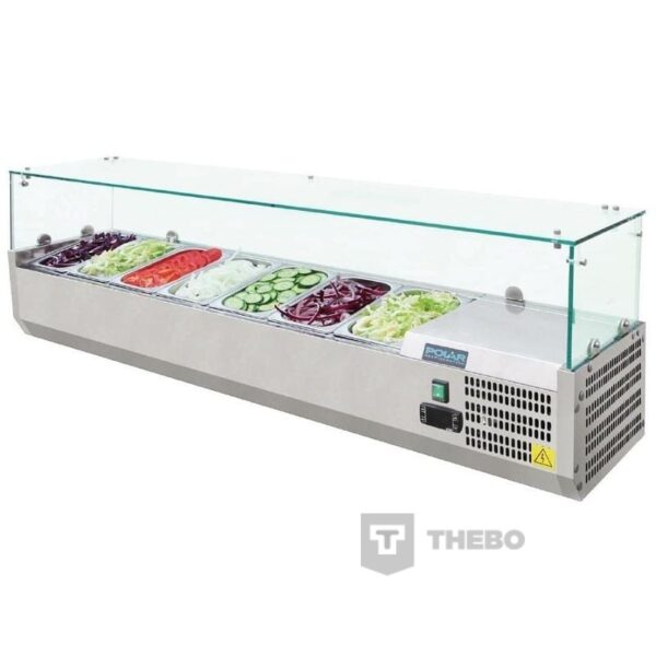 De Polar Opzetvitrine G608 is ideaal voor het gekoeld bewaren van ingrediënten voor in broodjeszaken, pizzeria’s etc. Met een digitaal display is de opzetvitrine gemakkelijk te bedienen. De G608 heeft een volledige roestvrij staal constructie met veiligheidsglas.