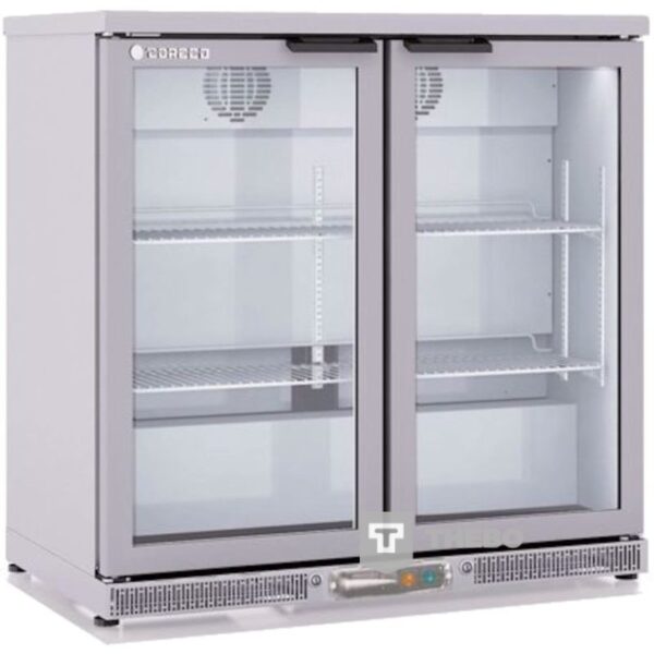 Coreco ERH-l 250 L RVS is een dubbeldeurs backbar koeling. Door de glasdeuren kunt u alle drankjes mooi presenteren. De koelkast beschikt over een temperatuurbereik tussen de +2 tot +8°C graden. Deze backbar koeling is gemaakt van roestvrij staal. De Coreco ERH-l 250 L RVS heeft een onderhoudsvrije condensor.