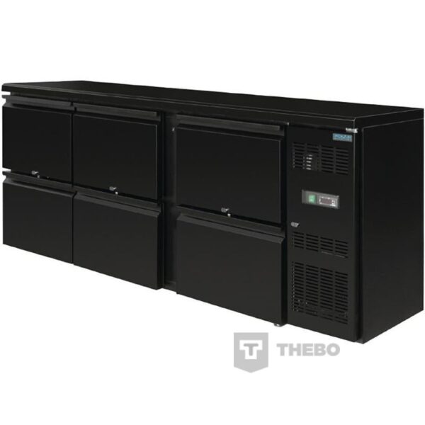De GL187 van Polar is uitgevoerd in zwart plaatstaal. Bij het koelen maakt deze backbar koelkast gebruik van het milieuvriendelijke koudemiddel R290. Deze backbar koelkast heeft een automatisch ontdooisysteem, waardoor je hem eenvoudig schoon kan maken. De Polar GL187 koelt geforceerd, wat een snelle en effectieve koeling inhoudt. Deze backbar koelkast heeft 6 laden, die allemaal afsluitbaar zijn. Het interieur van deze bardisplay is in roestvrij staal.