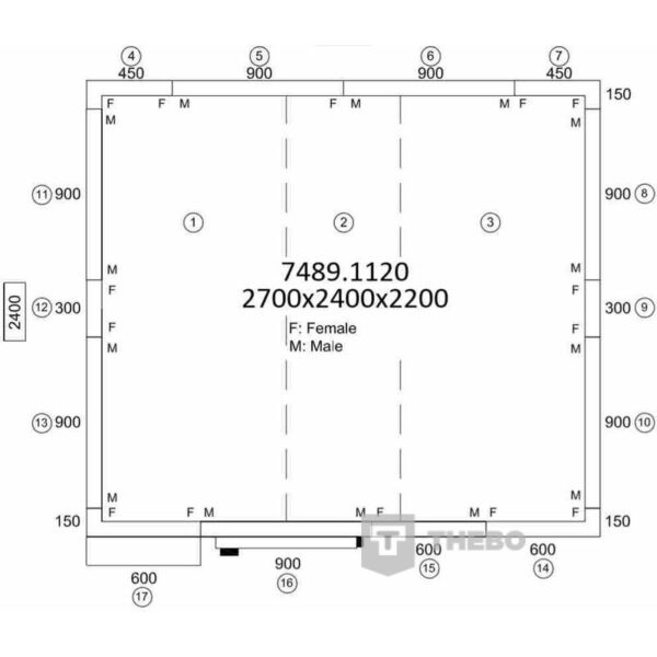 BxDxH 2700x2400x2200 mm