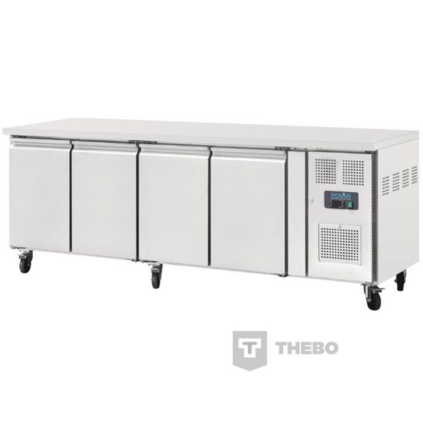Creëer extra werkruimte en bovendien extra opslagcapacteit in uw keuken met deze gekoelde werkbank van Polar. Deze werkbank heeft 4 deuren en biedt enorm veel ruimte voor al uw gekoelde producten. Door de geremde wielen is de werkbank eenvoudig, naar wens te verplaatsen naar een andere plek zodat u uw keuken schoon kunt houden en voldoet aan de hygiënevoorschriften.