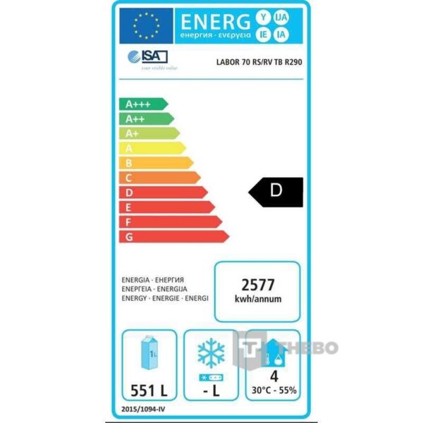 De ISA Labor 70 is een bedrijfsklare voorraadkast voor roomijs uitgevoerd in chroomnikkelstaal. Deze vrieskast is geschikt voor het plaatsen van max. 66 ijsbakken à 5 liter. De energiezuinige isolatie is 60 mm dik. De elektrische bediening is voorzien van een digitale weergave. De ventilator voor de circulatie is apart bij te schakelen. Het koelaggregaat is boven, buiten de binnenruimte aangebracht en is onderhoudsvrij. De ontdooiing van de ISA Labor 70 is handmatig door apparaat uitschakeling en dooiwaterafvoer d.m.v. een stop.
