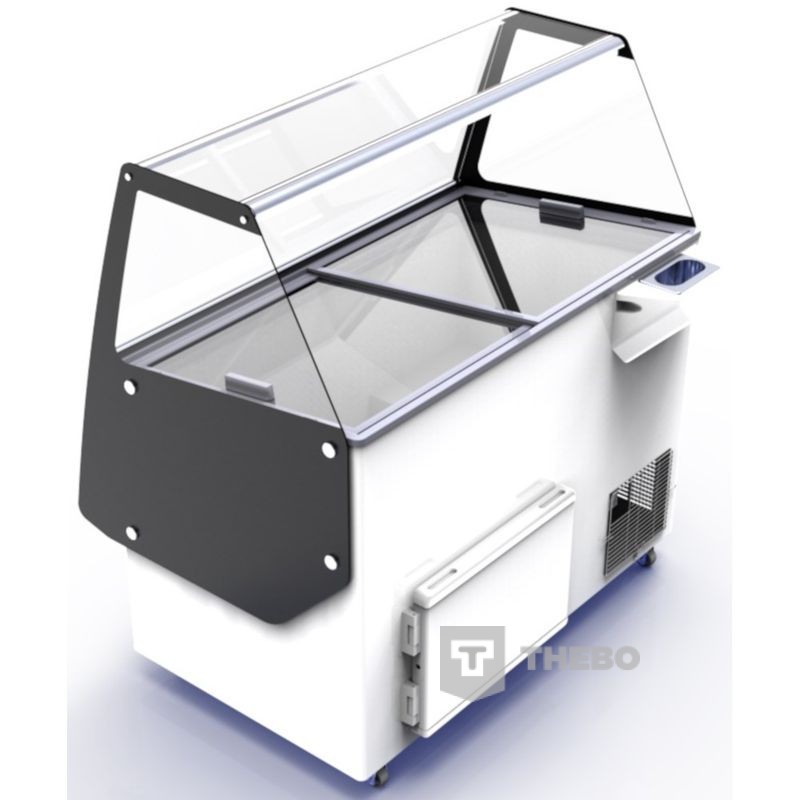 De Combisteel 7472.0145 schepijsvitrine is geschikt voor dertien ijsbakken. De ijsvitrine wordt gekoeld door middel van een statisch koelsysteem met het natuurlijke koudemiddel R290. De koeling is voorzien van een automatische ontdooiingsfunctie. Aan de bedieningskant is het deurtje naar de opslagruimte te vinden. De schepijsvitrine wordt geleverd met wielen en een ijslepel spoelbakje. De schepijsvitrine wordt geleverd zonder de schepijsbakken.