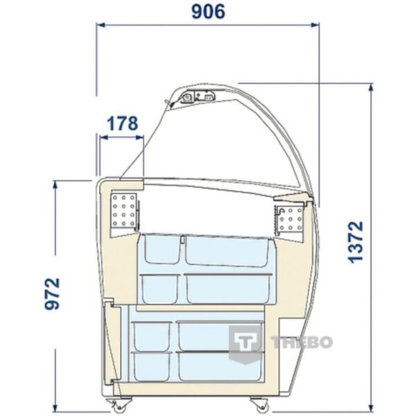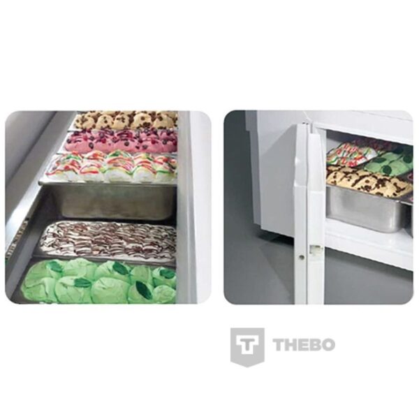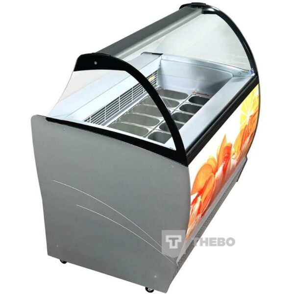 De Isabella LX 13 schepijsvitrine beschikt over automatisch ontdooien op basis van energiebesparend heet gas. De schepijsvitrine is een verrijdbare schepijsvitrine met plexiglas kantelklep aan de achterzijde. De Isabella LX 13 is voorzien van onderkoeling en opslagcapaciteit onder de bakken.
