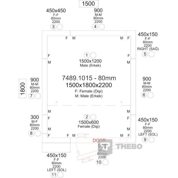 BxDxH 1500x1800x2200 mm