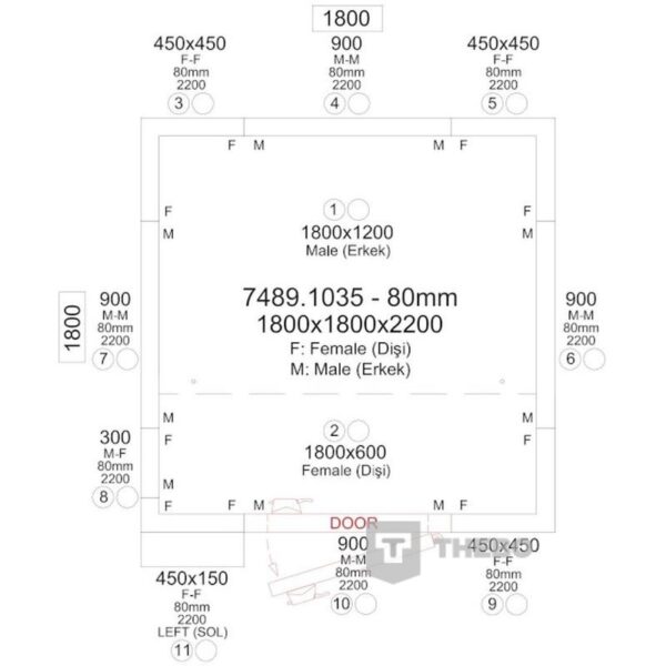 BxDxH 1800x1800x2200 mm