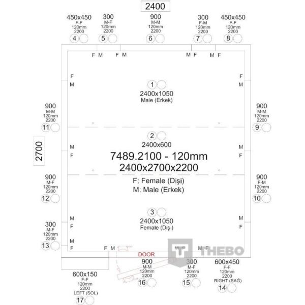 De panelen van de cel zijn samengesteld door middel van twee gecoate plaatstalen platen, gevuld met polyurethaan. De wanden worden aan elkaar verbonden door middel van een hakensysteem. Hierdoor is de cel gemakkelijk en stevig op te bouwen. De isolatiedikte van de wanden is 120mm. Dit maakt deze panelen extra geschikt voor het gebruik als vriescel.