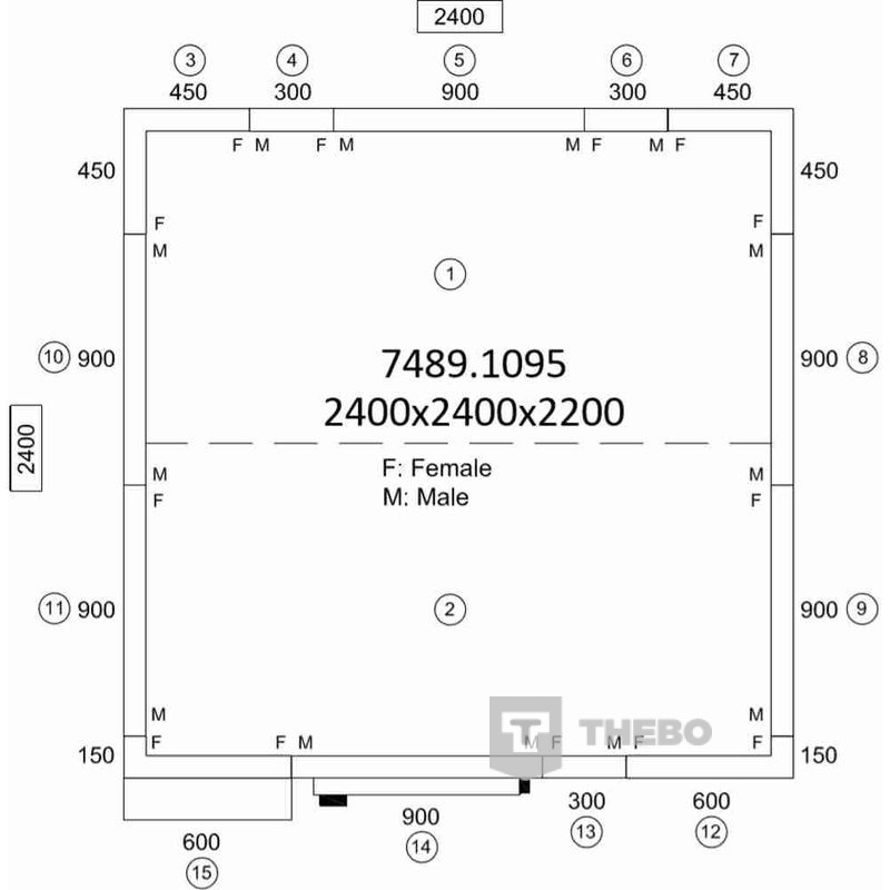 BxDxH 2400x2400x2200 mm
